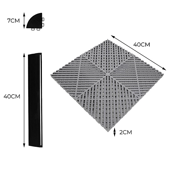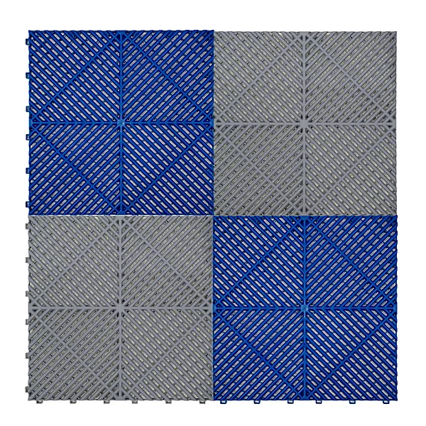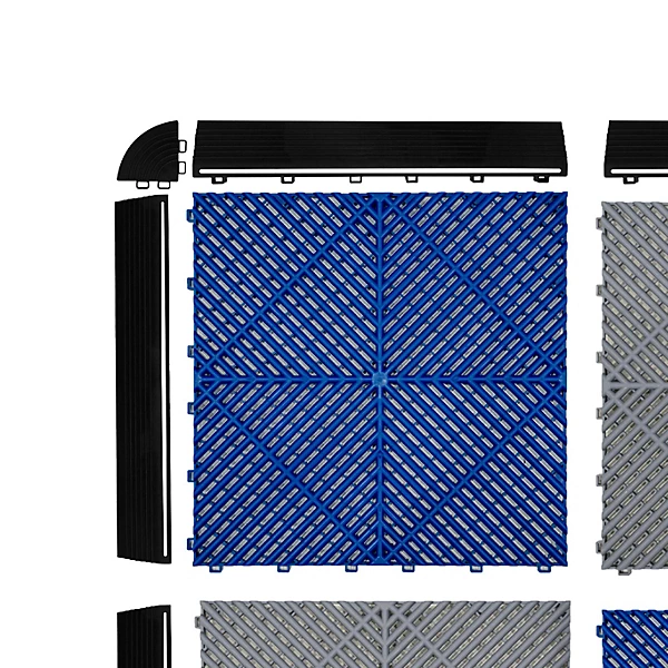 Vented Garage Floor Tiles Grey (x120), Blue (x120) with Edges (x60)